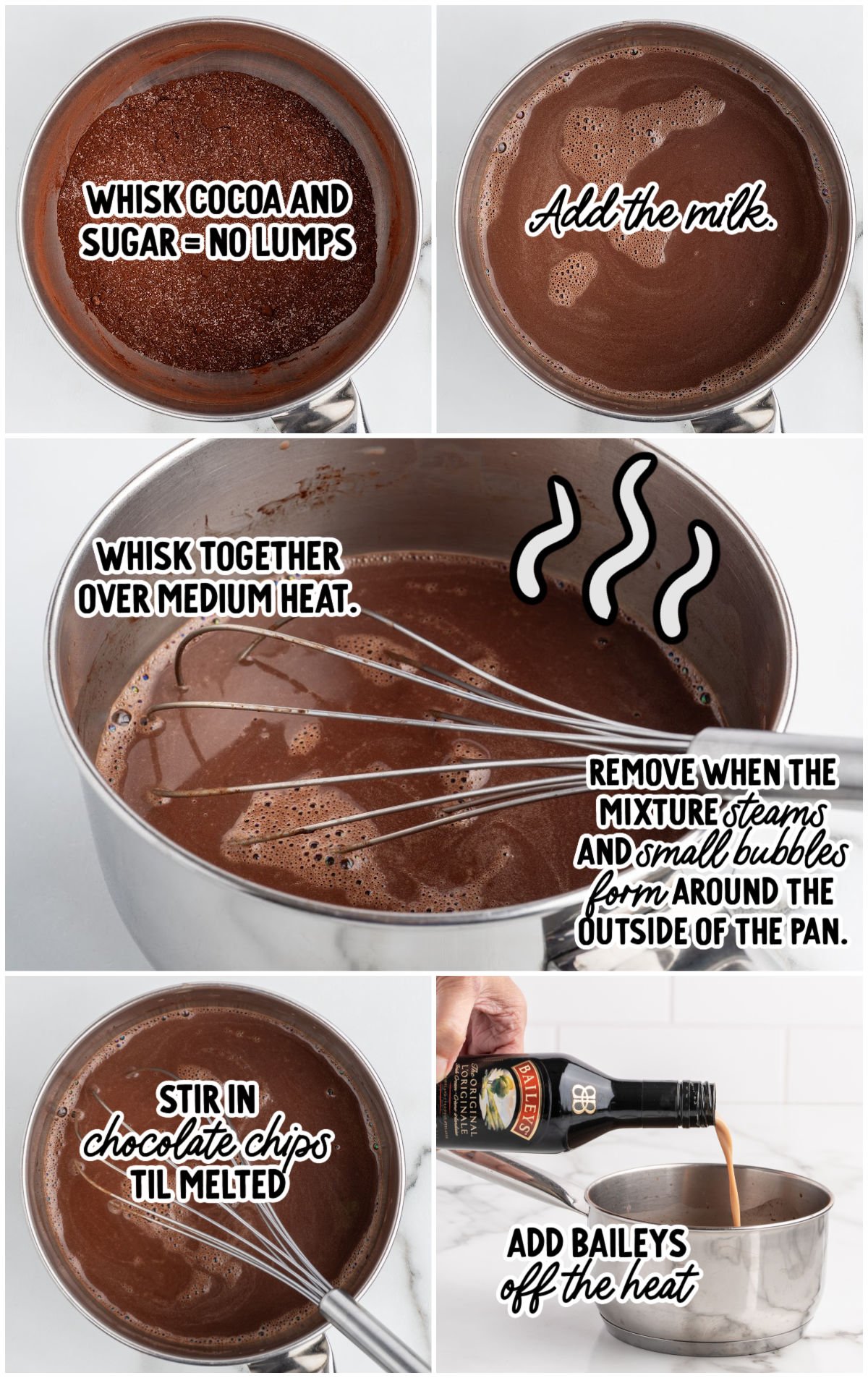 Can this hot chocolate be made in a slow cooker? This hot chocolate can be made in a slow cooker. Combine all ingredients except for the Baileys, and cook on low for two hours, stirring occasionally. Add the Baileys just before serving to preserve the alcohol content and flavor.