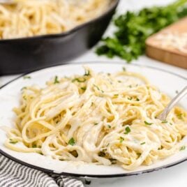 If the water is running low and the pasta isn’t quite close to cooked, don’t add cold water. Add very hot tap water – or better yet, boiling water – in 1 cup increments. You don’t want to add too much!