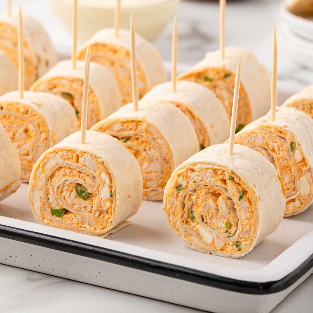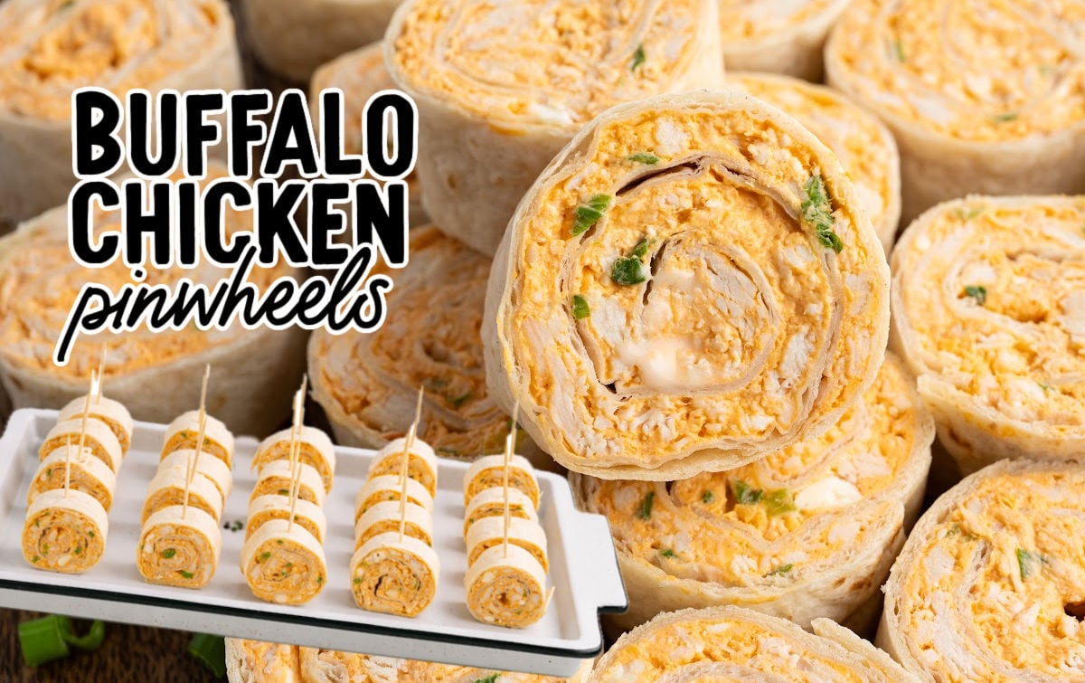 A party spread favorite, these buffalo chicken pinwheels have just the right blend of heat and creamy textures, all wrapped up in a bite-size snack.