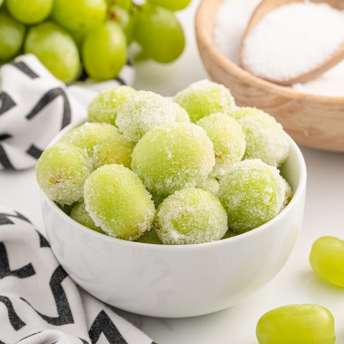 PRO TIP: For a non-frozen option, you can serve the sugared grapes chilled without freezing them, though they’ll be softer in texture. This method is great for a lighter, more refreshing snack option.