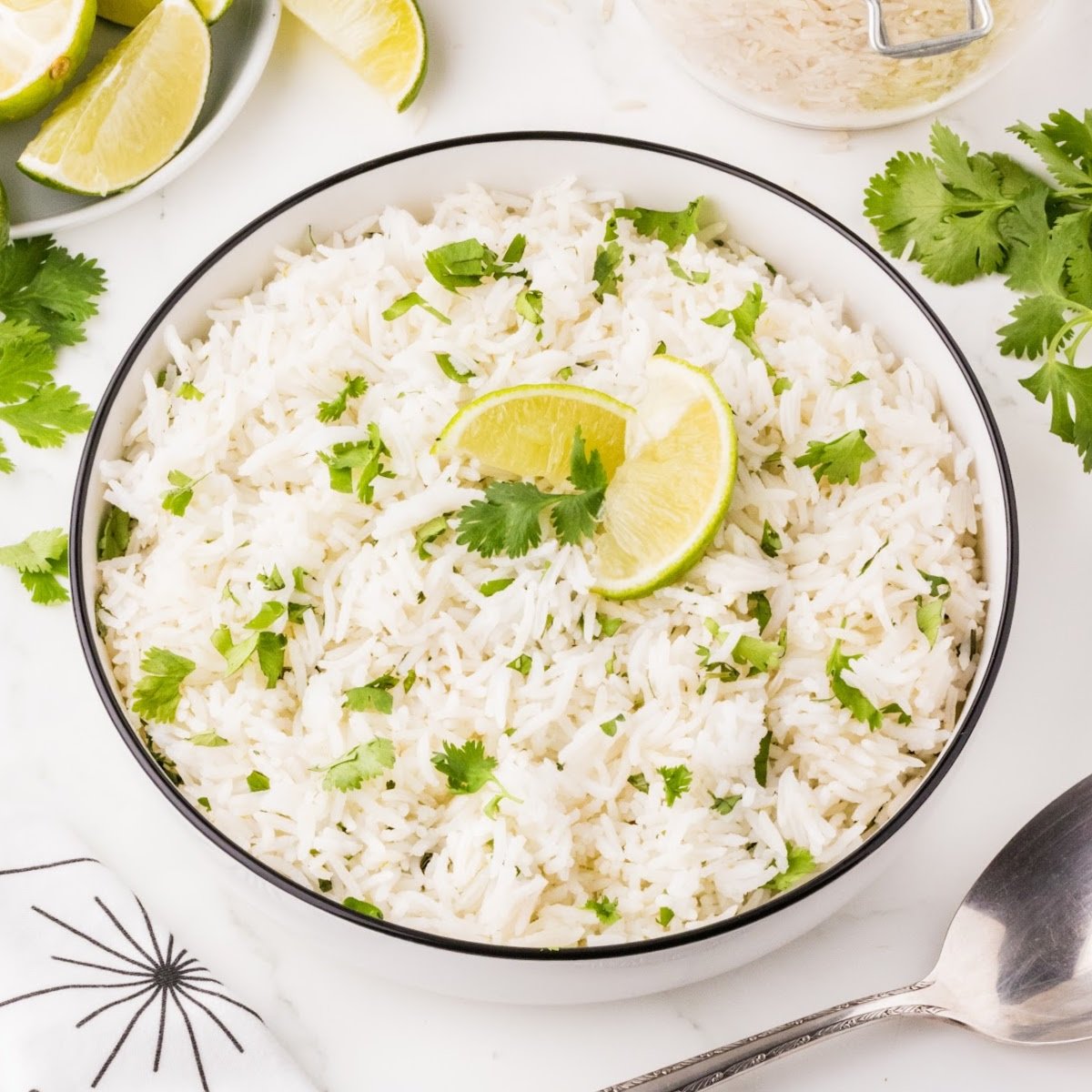 - Transfer the finished cilantro lime rice to a serving bowl. Garnish with additional chopped cilantro and a lime wedge, if desired.