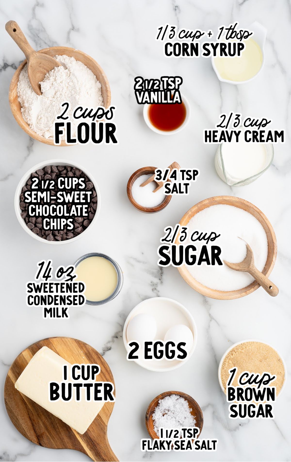 - Pour the ganache over the caramel and smooth to an even layer. Allow the ganache to cool for 10-12 minutes at room temperature before sprinkling on the flaky sea salt for garnish. This allows the ganache to set up slightly so that the sea salt does not immediately melt into the warm chocolate.