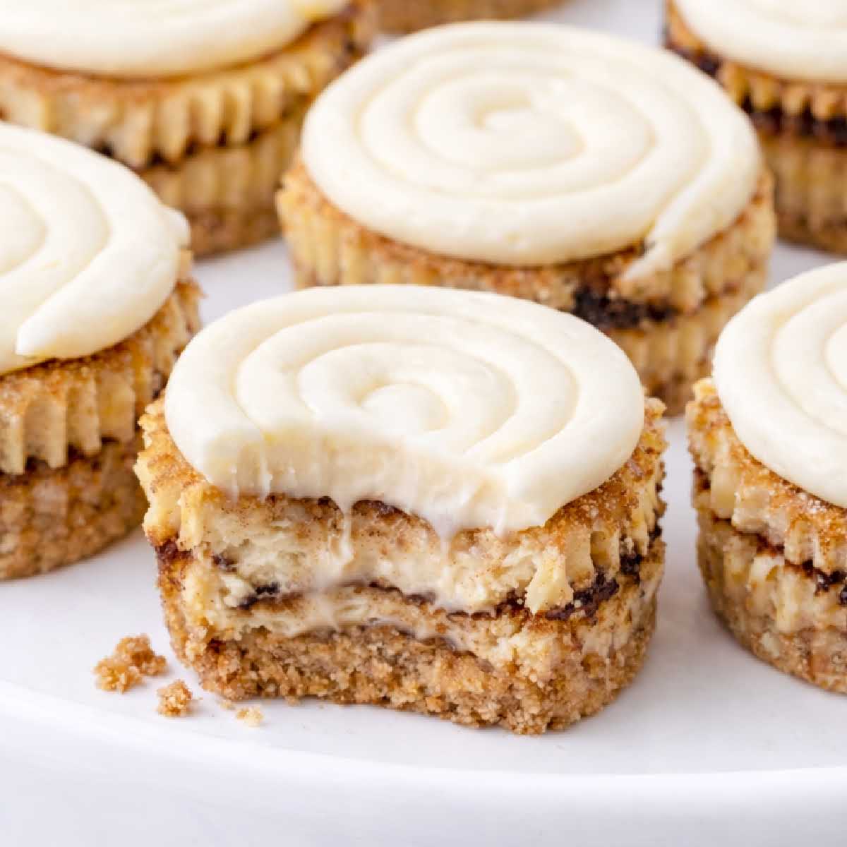 IRRESISTIBLE FLAVOR FUSION: These mini cheesecakes beautifully combine the beloved flavors of cinnamon rolls and creamy cheesecake into one delightful dessert.