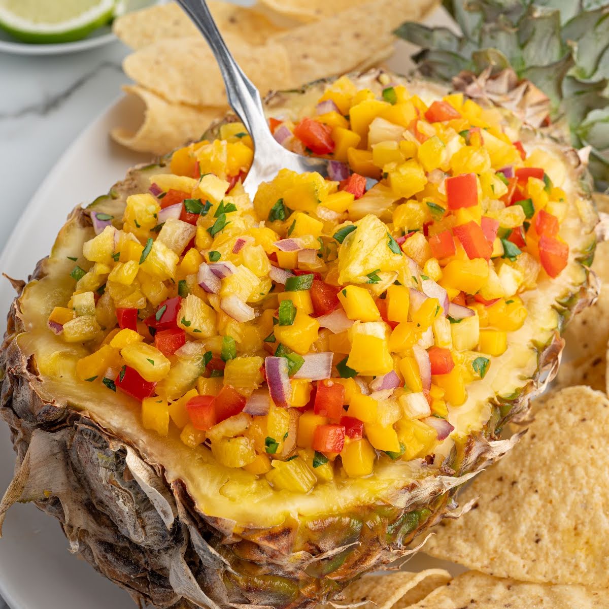 Pineapple mango salsa keeps well in the fridge for up to two days. Store it in an airtight container and give it a quick stir before serving. The flavors actually get better after a few hours, but the fruit will soften over time.